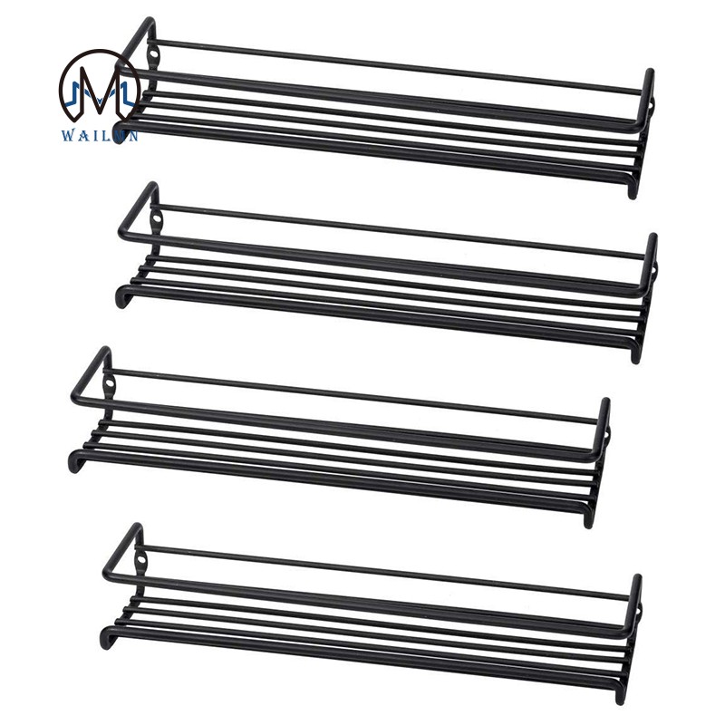 2020 4 Tier Large Wall Mounted Wire Spice Rack Organizer Black