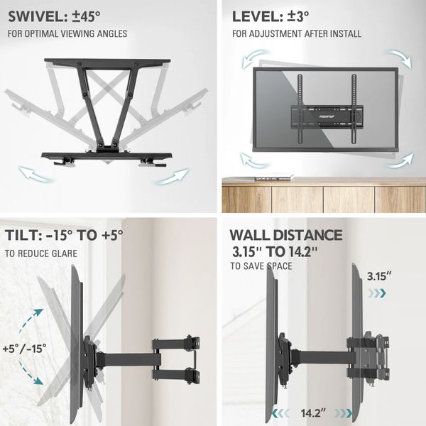 Amazon Com Mountup Tv Wall Mounts Full Motion Tv Wall Mount For