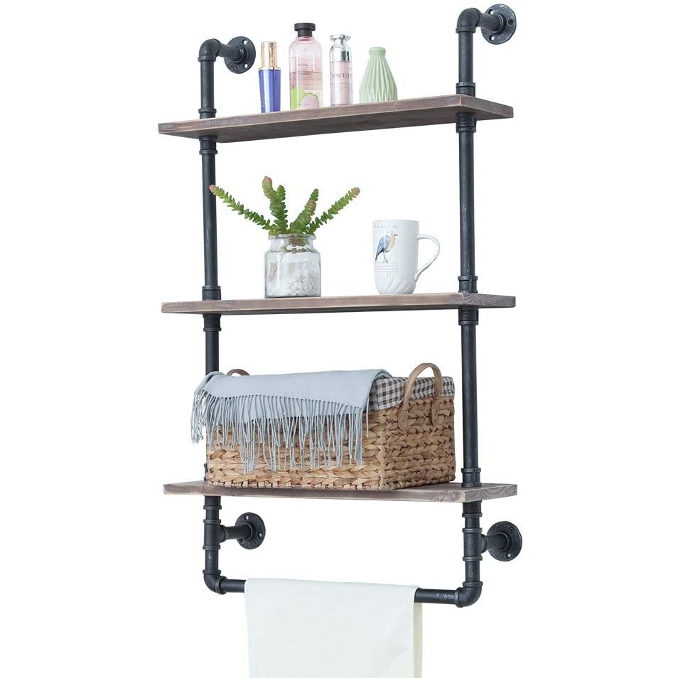 Mbqq Industrial Pipe Shelf Rustic Corner Shelves With Towel Bar Bathroom Shelves Wall Mounted 3 Tiered Metal Real Wood Home Decor Floating Shelves Formtech Inc Com