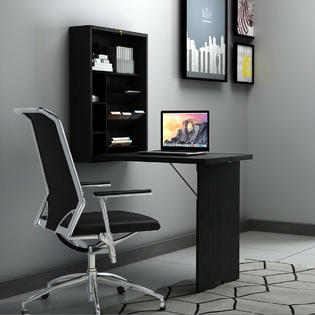 Gymax Wall Mounted Fold Out Convertible Floating Desk Space Saver