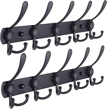 Amazon Com Webi Coat Rack Wall Mounted 17 1 8 Inch Coat Hooks For Hanging Coats Heavy Duty Metal Hook Rack Rail With 6 Double Dual Hooks Coat Hanger Wall Mount For Purse Clothes Jacket Backpack Entryway Black