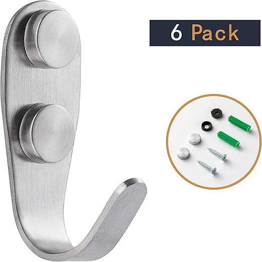 Amazon 6pk Hooks For Wall Mounted Hanging Heavy Duty Wall Hooks Stainless Steel 4 3 8 6
