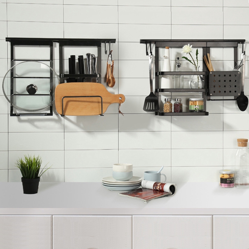 Black Wall Mounted Kitchen Racks With Hooks Space Aluminum Storage