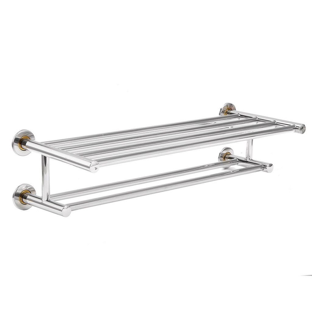 Large Stainless Steel Double Layer Towel Rail Wall Mounted Bathroom Storage Shelf Rack Clothes Shopee Indonesia