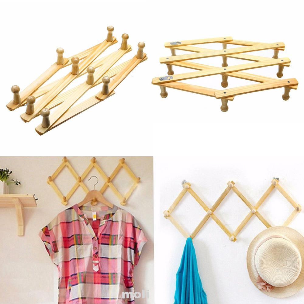 Murah Vintage Wall Mounted Hanging Rack Clothes Bags Hats Storage Organizer Adjustable Wooden Hook Shopee Indonesia