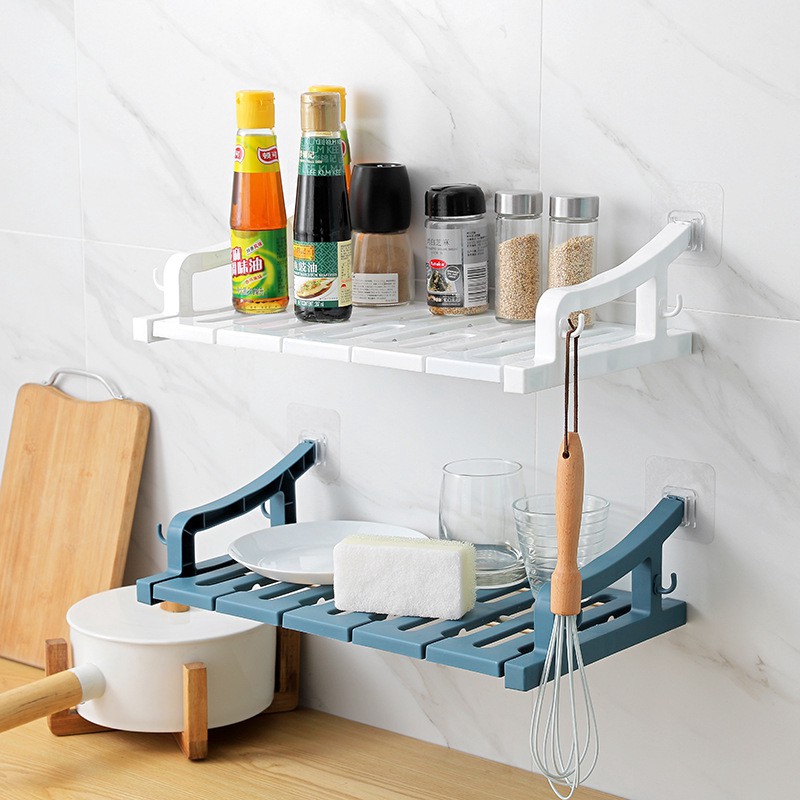 Punch Free Wall Mounted Racks Kitchen Food Shelf Bathroom Multi