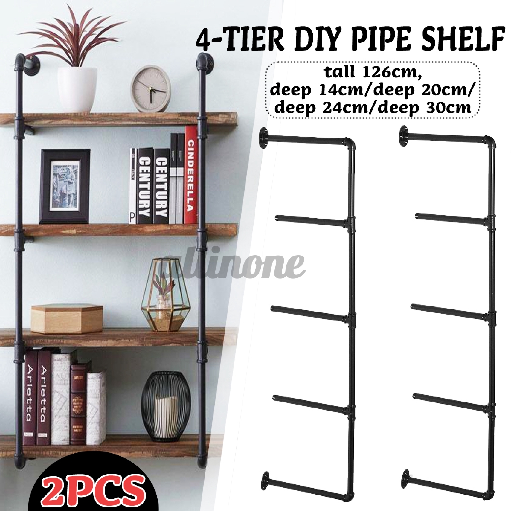 2pcs 4 Tier Wall Shelf Industrial Iron Pipe Shelving Mounted