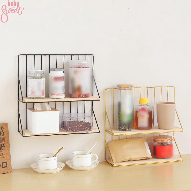 Jual Wooden Iron Wall Shelf Organizer Storage Rack Wall Mounted