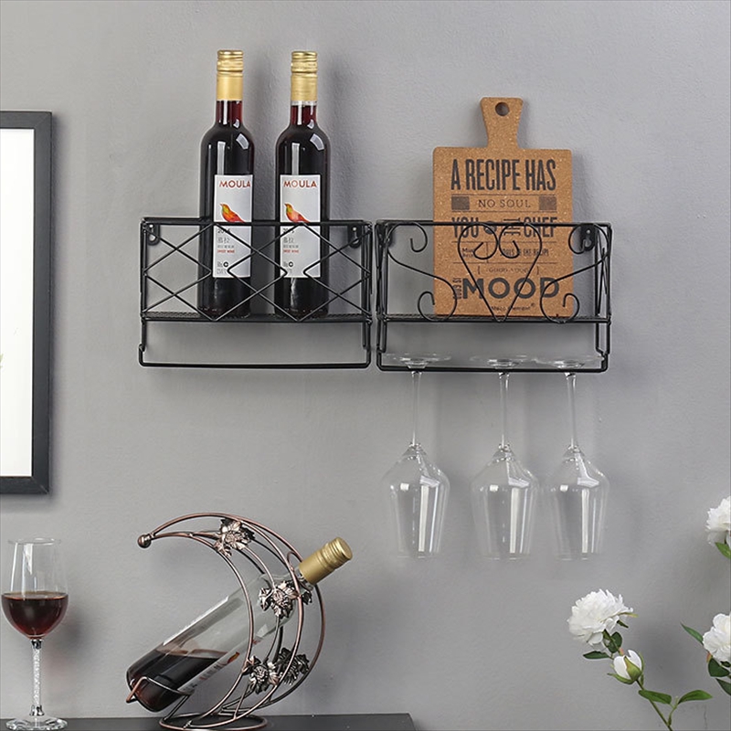 Metal Wall Mount Wine Rack Bottle Champagne Glass Holder Storage