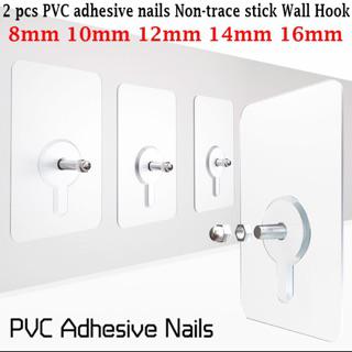 2 Pcs Pvc Adhesive Nails Non Trace Stick Wall Hook Transparent