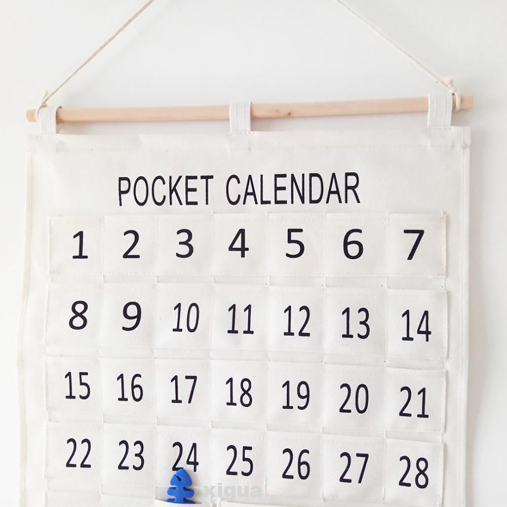 Calendar Mini Pocket Space Saving Storage Wall Decor Hanging Bag