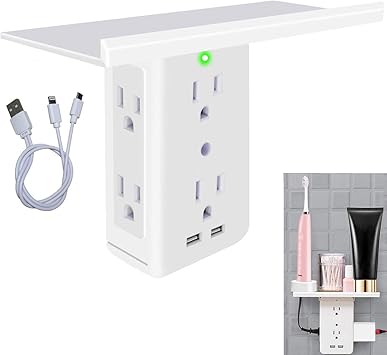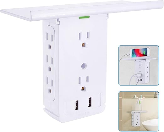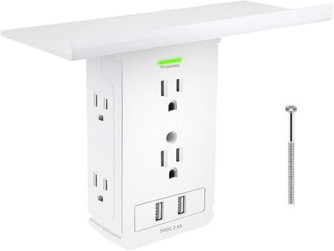 Socket Shelf 8 Port Surge Protector Wall Outlet 6 Electrical