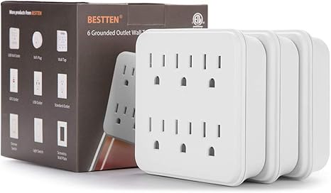 3 Pack Bestten Multiple Wall Outlet 6 Outlet Extender Wall Tap