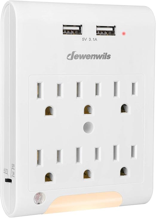 Dewenwils Multi Outlet Adapter With 2 Usb Charging Ports 3 1a