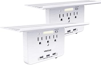 2 Pack Socket Shelf Vintar 6 Port Surge Protector Wall Outlet 3