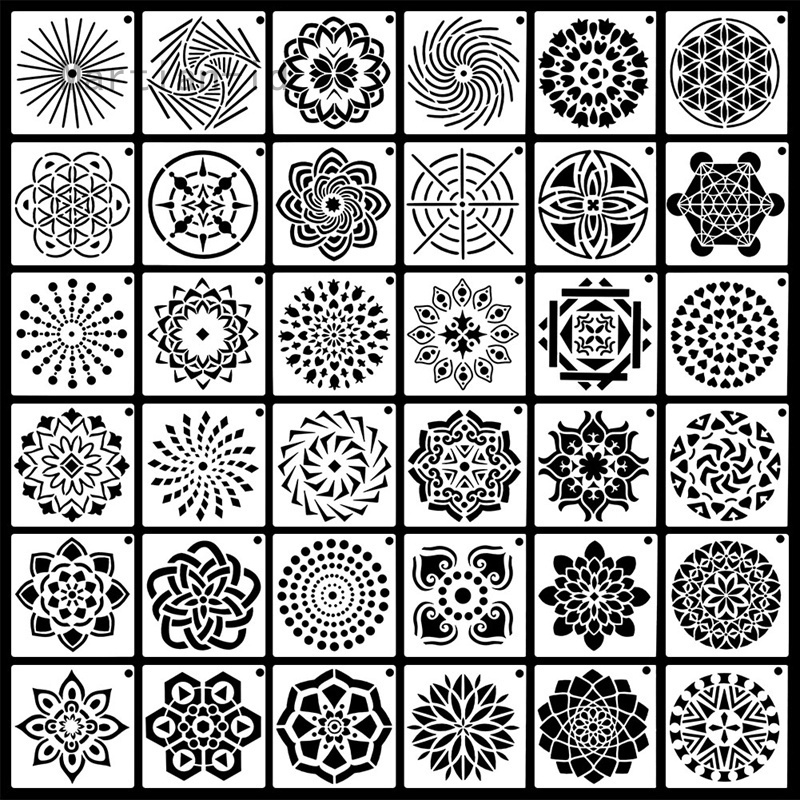 36pcs 32pcs 24pcs 16pcs Stencils Airbrush Wall Painting
