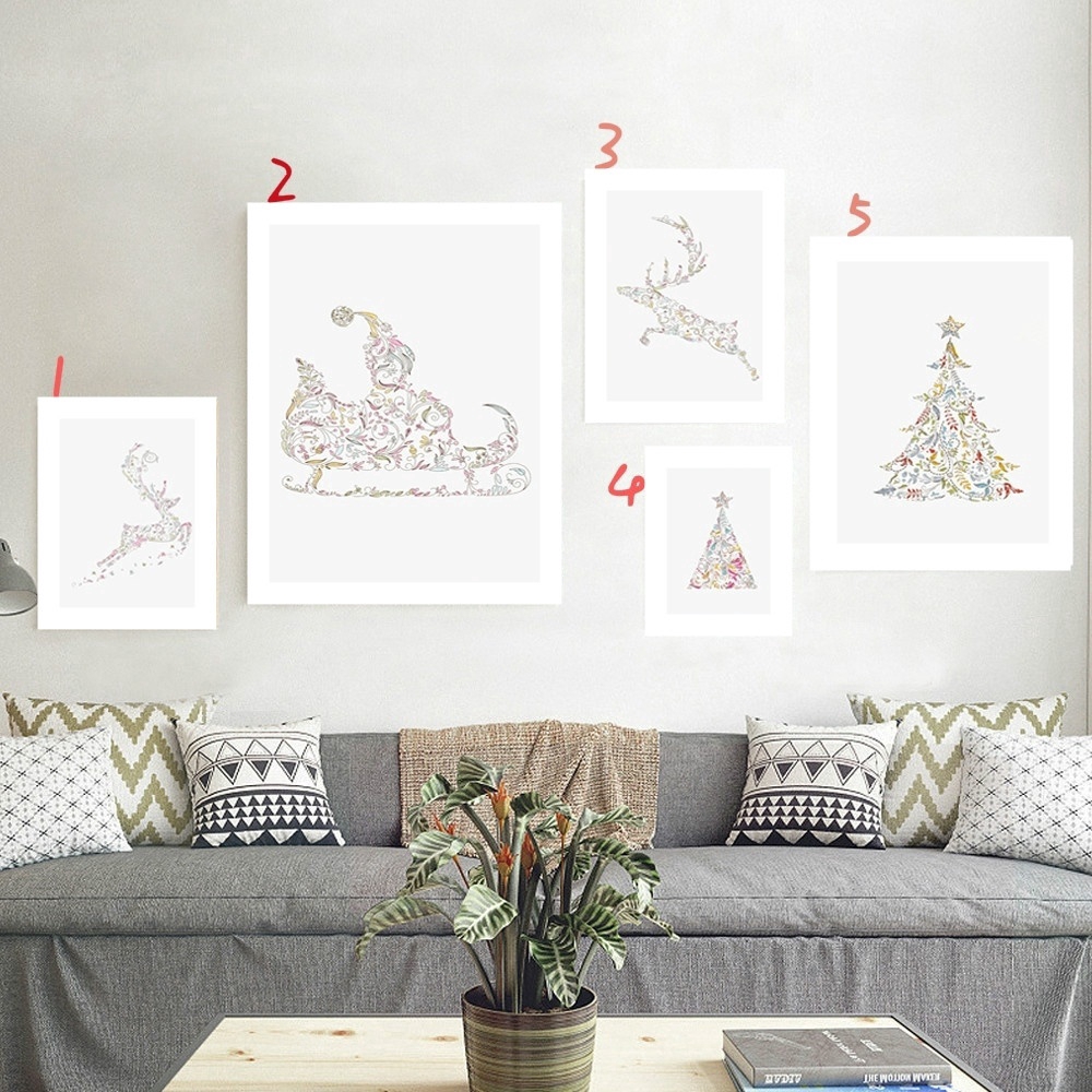 No Frame 5 Pcs Deer Wall Painting Modern Tree Canvas Painting Art