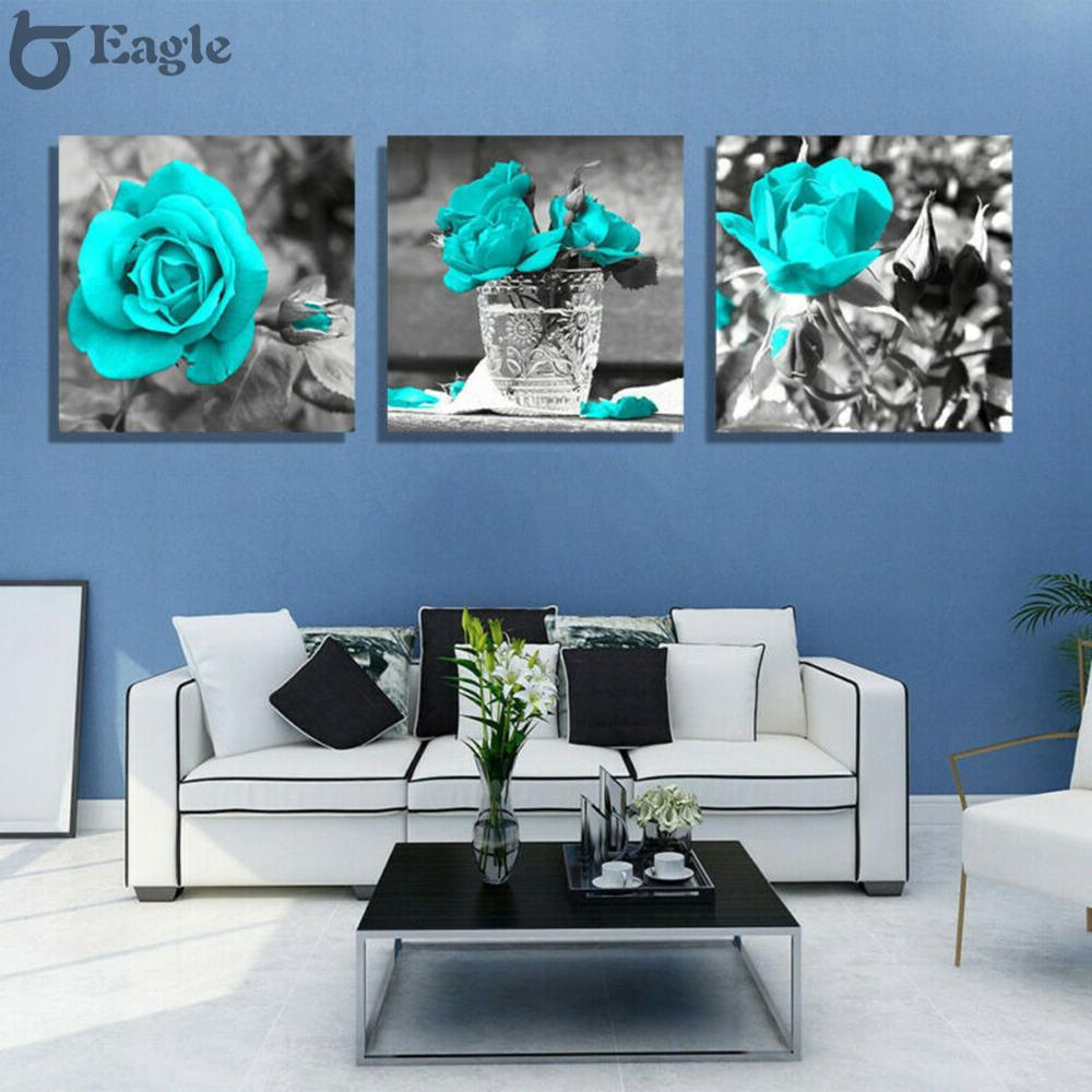 Wall Paintings Decor Corridor Cyan Rose Flower Art Pictures