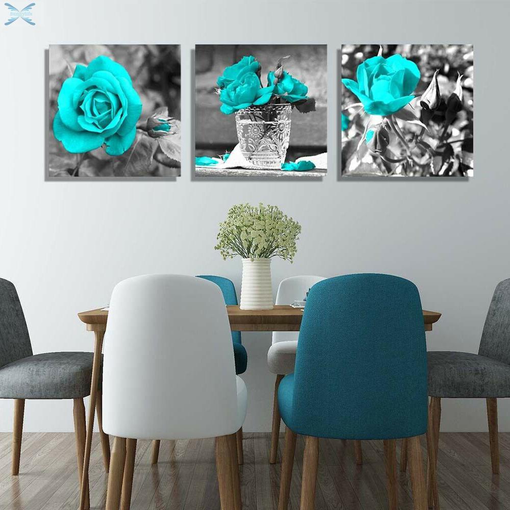 Wall Paintings Flower Painting Cyan Rose Wall Art Pictures For Bedroom Frameless High Quality Shopee Indonesia