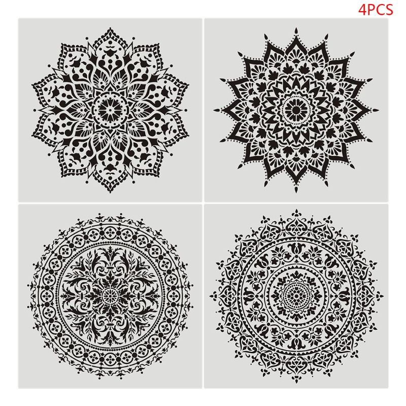4pcs Flower Stencil Wall Painting Drawing Template For Floor Tiles