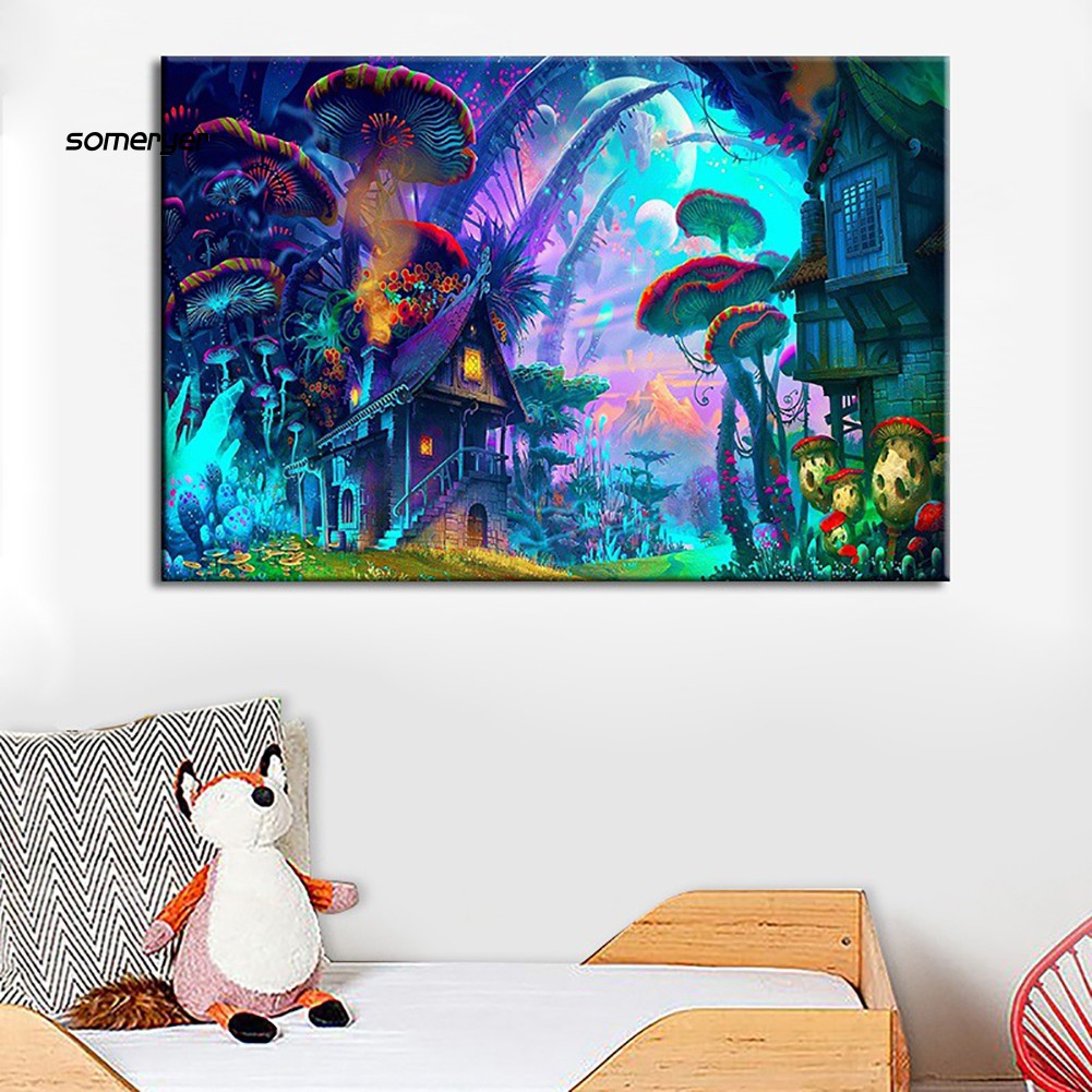 Som Unframed Cartoon Forest Canvas Painting Kids Room Picture