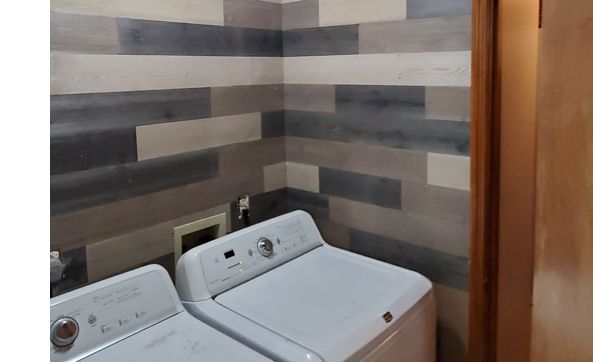 Decorative Wall Paneling In A Laundry Room Sealed With